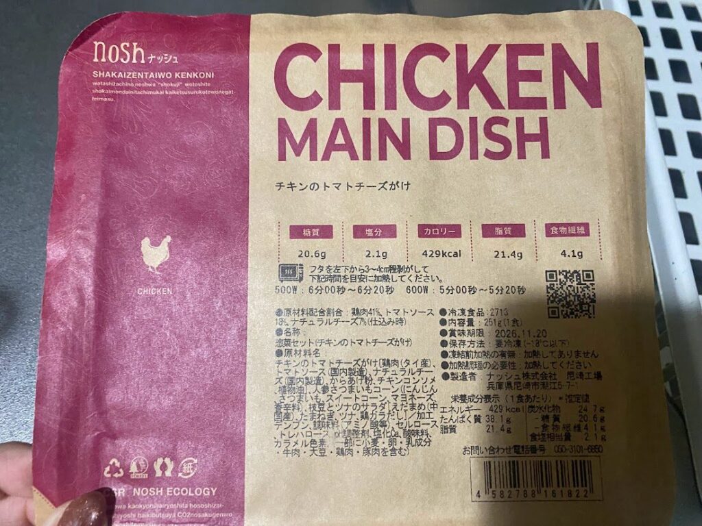 ナッシュのチキンのトマトチーズは、さっぱりとした味わいで食べやすい洋風チキンメニューでした。