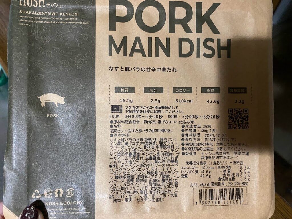 ナッシュのなすと豚バラの甘辛中華だれは、こってり系ながら満足感の高い中華メニューでした。