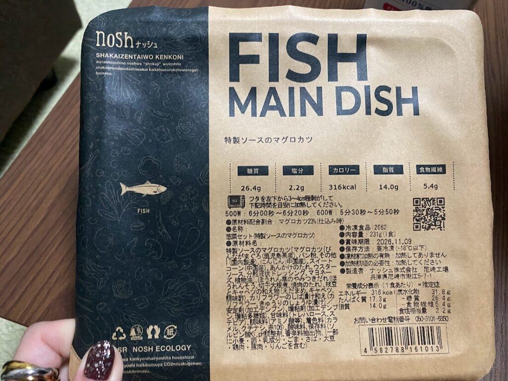 ナッシュの特製ソースのマグロカツは、宅配弁当とは思えないほど、満足感のある揚げ物系メニューでした。
